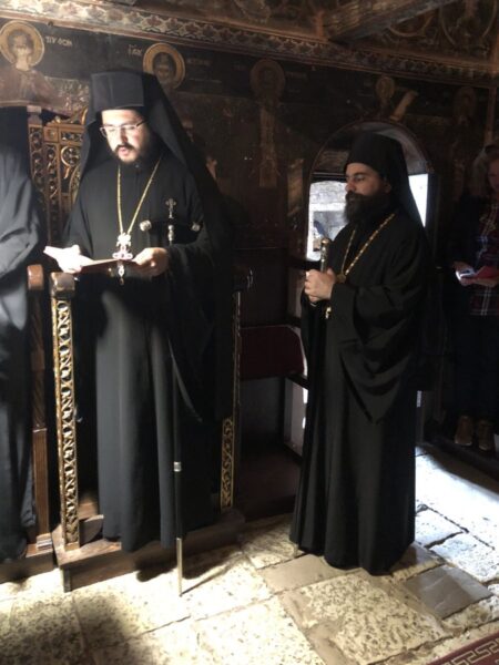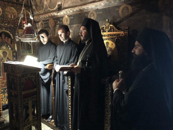 Την κυριώνυμο ημέρα, προέστη της Ακολουθίας του Όρθρου και της Θείας Λειτουργίας ο Πανοσιολογιώτατος Καθηγούμενος της Ιεράς Μονής.