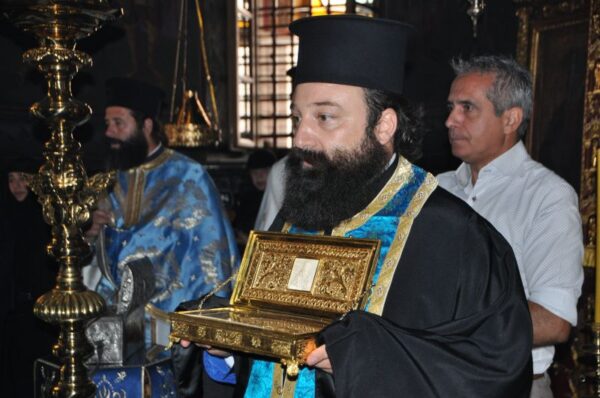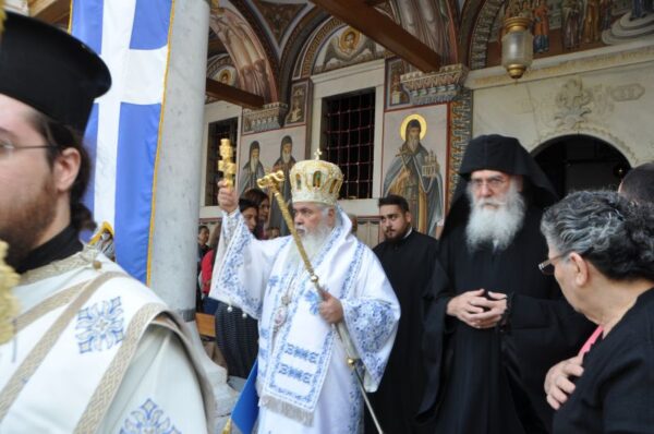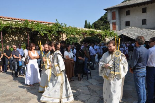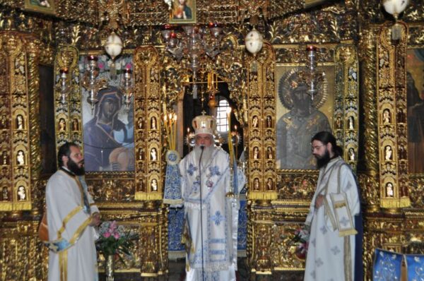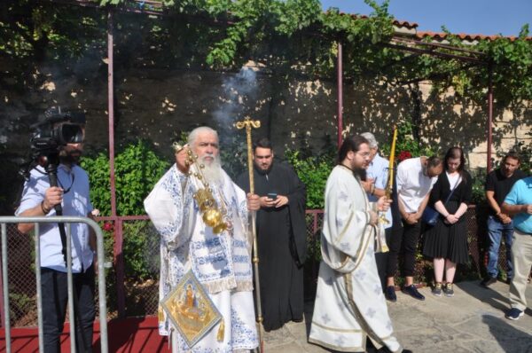 Μετά το πέρας της Θείας Λειτουργίας έγινε αγιασμός στη φιάλη της Μονής και στη συνέχεια ο Σεβασμιώτατος Μητροπολίτης Νεαπόλεως και Σταυρουπόλεως κ. Βαρνάβας μίλησε για τη Θεοτόκο.