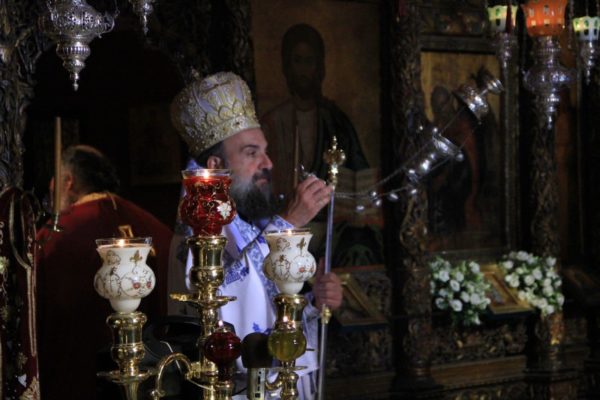 Ο Σεβασμιώτατος Μητροπολίτης Θήρας Αμοργού και Νήσων κ. Αμφιλόχιος χοροστάτησε στον Μεγάλο Πανηγυρικό Εσπερινό που τελέσθηκε την Τρίτη 19 Ιουλίου 2022 το απόγευμα στο καθολικό της Ιεράς Μονής Προφήτου Ηλιού περιστοιχισμένος από τον Καθηγούμενο της Ιεράς Μονής αρχιμ. Δαμασκηνό Γαβαλά, την αδελφότητα της Ιεράς Μονής καθώς και από πλήθος κληρικών της νήσου αλλά και προερχομένους από έτερες Μητροπόλεις.