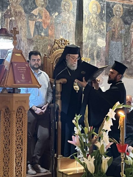 Την επομένη ημέρα τελέσθηκε το Αρχιερατικό Συλλείτουργο προεξάρχοντος του Σεβασμιωτάτου Μητροπολίτου Καρυστίας και Σκύρου κ. Σεραφείμ με συνιερουργό τον Σεβασμασμιώτατο Μητροπολίτη Ειρηνουπόλεως κ. Νίκανδρο, τον Πρωτοσύγκελλο, Αρχιμ Νικόδημο Πόγκα, τον Ηγούνενο της Ιεράς Μονής, Αρχιμ Νικόδημο Γιαννακόπουλο, τους αδελφούς ιεράς μονής και συμπροσευχόμενο τον Αρχιμ Ιάκωβο Μπαλωμένο, Ηγούμενο της Ιεράς Μονής Κοιμήσεως της Θεοτόκου Μακρυμάλης Ψσχνών εκ της γειτονικής Ιεράς Μητροπόλεως Χαλκίδος.