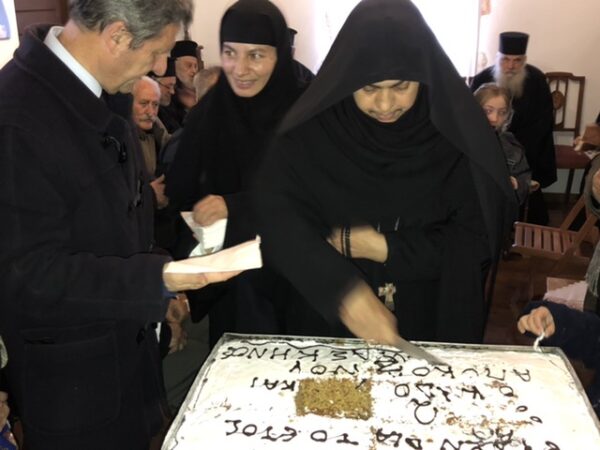 Μετά το πέρας της Θείας Λειτουργίας πραγματοποιήθηκε όπως συνηθίζεται κάθε χρόνο την ημέρα αυτή η ευλογία της Αγιοβασιλόπιτας της Μονής προεξάρχοντος του Σεβασμιωτάτου Ποιμενάρχου μας κ.κ. Δαμασκηνού.
