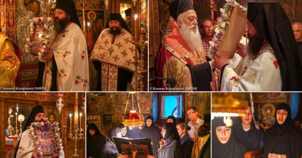 Καί ταπεινά αὐτό εὔχομαι πατρικά καί στήν Ἱερά Ἀδελφότητα πού τούς τιμᾶ καθημερινά ἀλλά καί σέ ὅλους ἐσᾶς πού ἤρθατε ἀπόψε γιά νά τούς τιμήσετε ἐδῶ στό Μονα­στήρι τους καί νά λάβετε τή χάρη καί τήν εὐλογία τους. Ἀμήν.