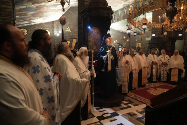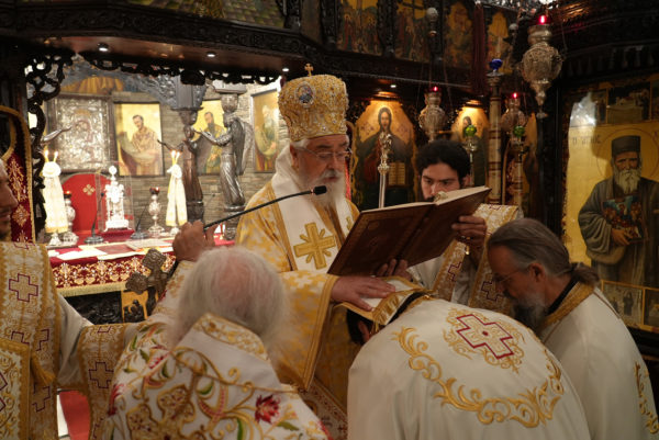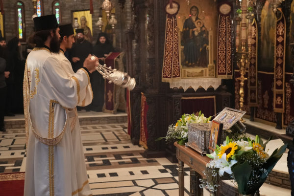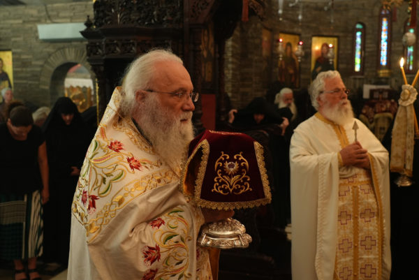 Η πρώτη ευλογία είναι ότι η εορτή τελέστηκε πανευφρόσυνα κατά τη μοναστηριακή τάξη, τόσο στην παραμονή κατά την πανηγυρική Αρχιερατική ακολουθία του Εσπερινού, όπου χοροστάτησε ο Μητροπολίτης Φωκίδος κ. Θεόκτιστος, όσο και ανήμερα της εορτής όπου ο Ποιμενάρχης προεξήρχε της Θείας Λειτουργίας. Κατά τη διάρκεια των ιερών ακολουθιών ο Σεβασμιώτατος ήταν πλαισιούμενος από τον Καθηγούμενο του Ιερού Ησυχαστηρίου και Πρωτοσύγκελλο της Ιεράς Μητροπόλεως Αρχιμανδρίτη Νεκτάριο Μουλατσιώτη, τον Γενικό Αρχιερατικό Επίτροπο Πρωτ. Νικόλαο Καραγιάννη, τους κατά τόπους Αρχιερατικούς Επιτρόπους καθώς και ιερείς της Μητροπόλεως μας. Τις δυο αυτές ημέρες το θείο λόγο κήρυξε ο σεπτός Ποιμενάρχης μας.