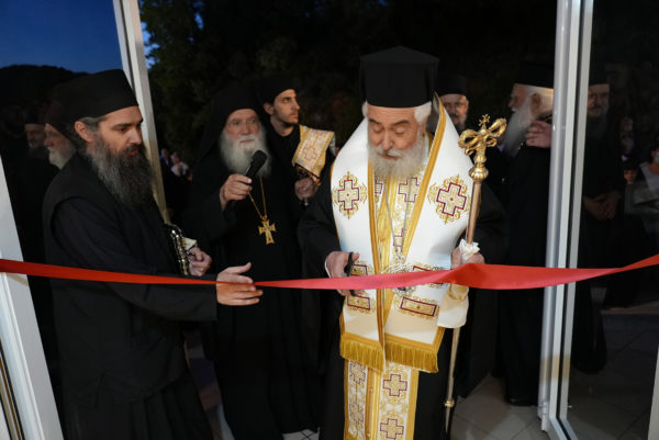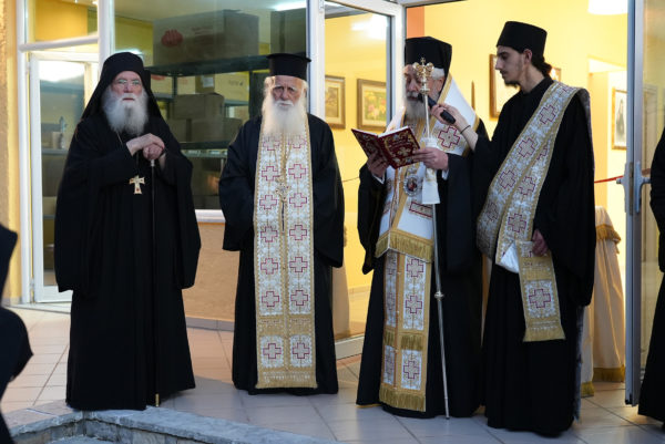 Η δεύτερη ευλογία ακολούθησε μετά την ακολουθία του Εσπερινού, όπου ο Σεβασμιώτατος τέλεσε την ακολουθία του Αγιασμού και εγκαινίασε τον νέο χώρο διακονημάτων – εργαστηρίων που βρίσκεται πλησίον του Ιερού Ησυχαστηρίου μας.
