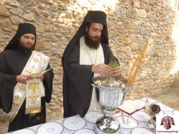 Στον Εσπερινό συμμετείχε και συμπροσευχήθηκε ο Σεβασμιώτατος Μητροπολίτης Μονεμβασίας και Σπάρτης κ. Ευστάθιος, ενώ νωρίτερα είχε τελεσθεί από τον Καθηγούμενο της Μονής, Πανοσ. Αρχιμ. Γρηγόριο Βαλτογιάννη, ο καθιερωμένος Αγιασμός για το νέο μήνα.