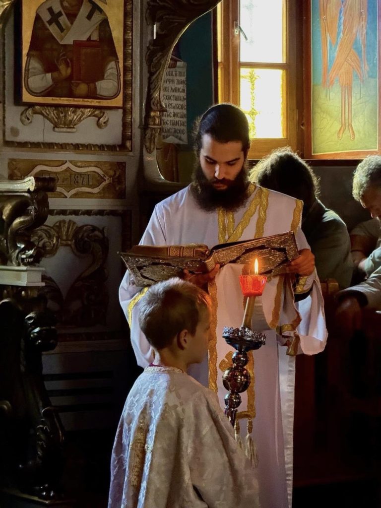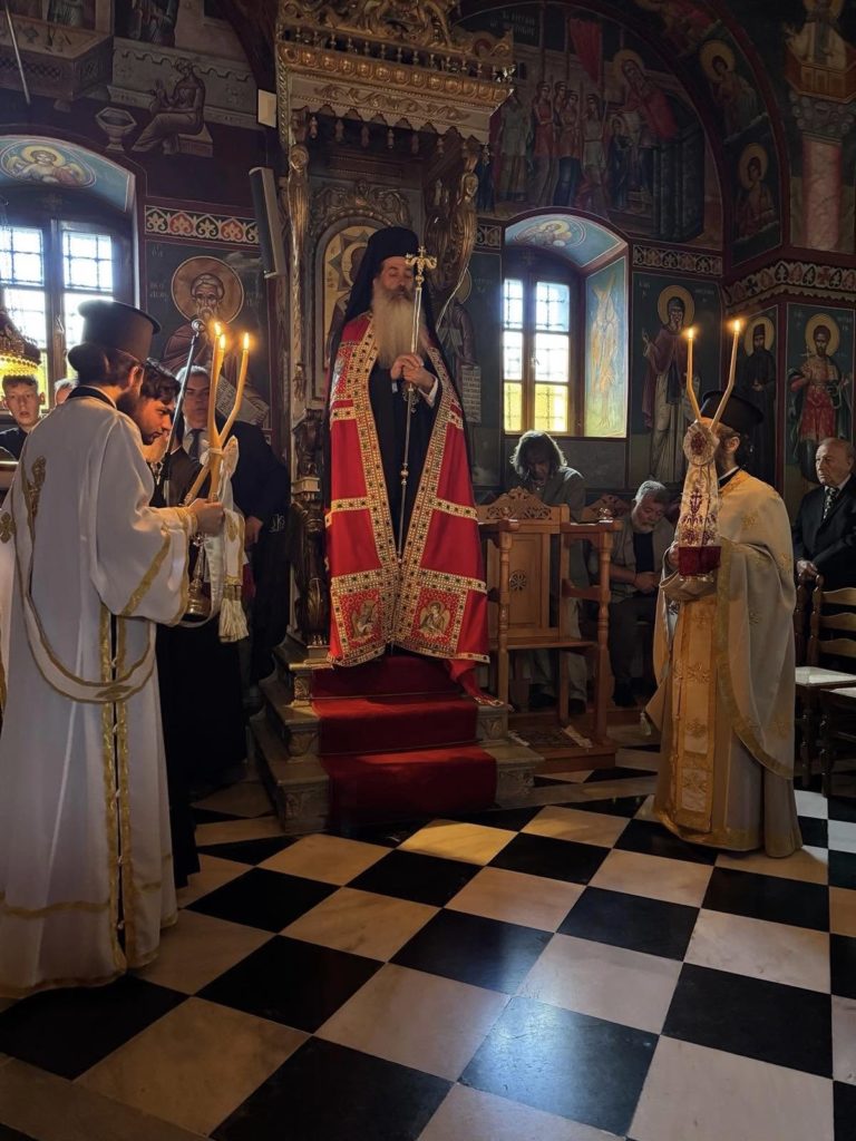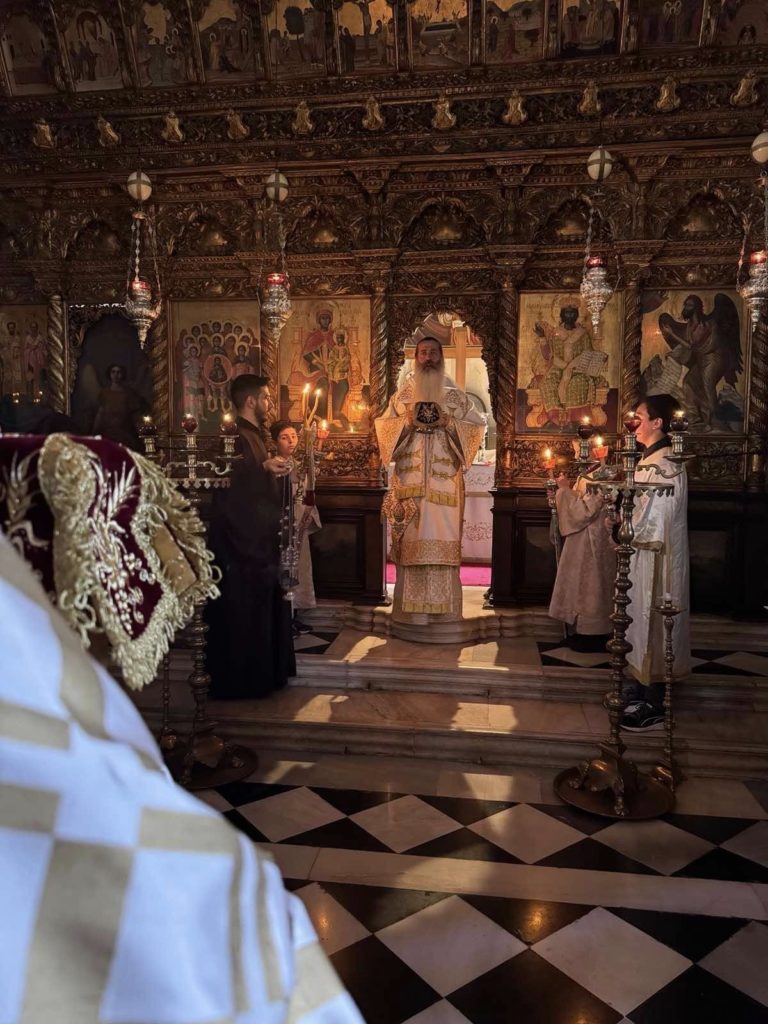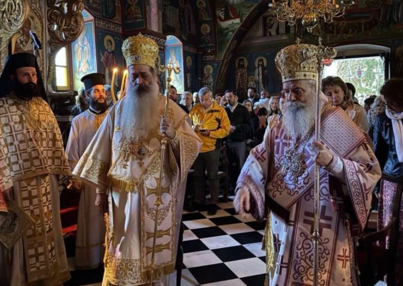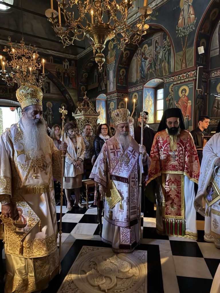 Της δισαρχιερατικής πανηγυρικής Θ. Λειτουργίας προεξήρχε ο Σεβ. Μητροπολίτης Φθιώτιδος κ. Συμεών, κατόπιν αδελφικής προσκλήσεως του Σεβ. Μητροπολίτου Ύδρας κ. Εφραίμ.
