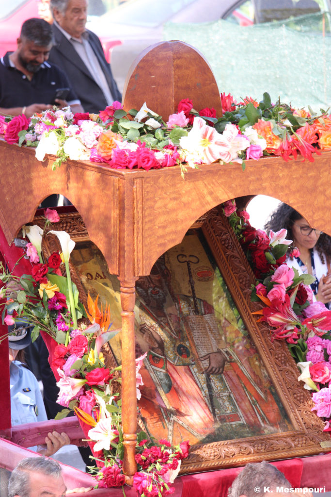Την κυριώνυμο ημέρα ο Σεβασμιώτατος χοροστάτησε στον Όρθρο και προεξήρχε της Θείας Λειτουργίας, όπου κήρυξε και τον θείο λόγο. Πριν την απόλυση έγινε στον αύλειο χώρο της Ιεράς Μονής λιτανεία της θαυματουργού εικόνας του Αγίου.