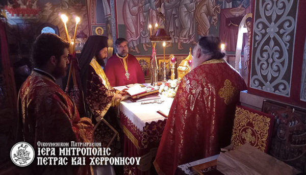 Ο Μέγας Πανηγυρικός Εσπερινός της Εορτής τελέσθηκε στην Ιερά Μονή Αγίου Γεωργίου Σεληνάρι, χοροστατούντος του Μητροπολίτη Πέτρας και Χερρονήσου κ. Γερασίμου.