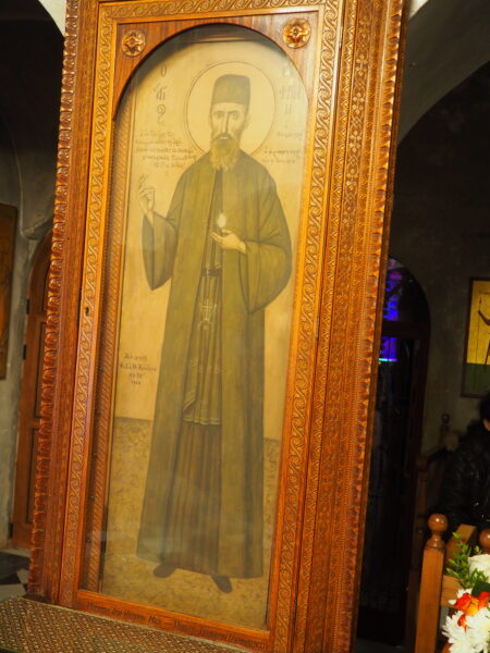 Αριστερά, μετά την είσοδο στο Καθολικό της Ιεράς Μονής βρίσκεται φορητή εικόνα του Αγίου Εφραίμ, ιστορηθείσα από τον αείμνηστο Φώτη Κόντογλου.