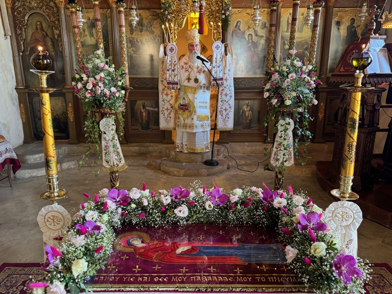 Του Εσπερινού της εορτής χοροστάτησε στην Ιερά Πατριαρχική Μονή Γωνιάς, προεξήρχε της Ιεράς Αγρυπνίας, ψάλλοντας τα Εγκώμια ενώπιον του ιερού Επιταφίου Της, και χοροστάτησε στην Θεία Λειτουργία, κατά την κυριώνυμο ημέρα.