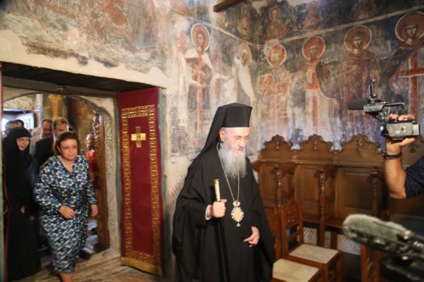 Την Υπουργό υποδέχθηκε ο Σεβ. Μητροπολίτης Ναυπάκτου και Αγίου Βλασίου κ. Ιερόθεος, μαζί με την Ηγουμένη Ειρήνη και τις μοναχές της Αδελφότητος, στο προαύλιο της Μονής, όπου και τελέσθηκε δέηση έμπροσθεν της κεντρικής εισόδου του Ναού. Ακολούθησε η κοπή της κορδέλας και στην συνέχεια, εντός του Καθολικού, εκφωνήθηκαν σύντομοι λόγοι.