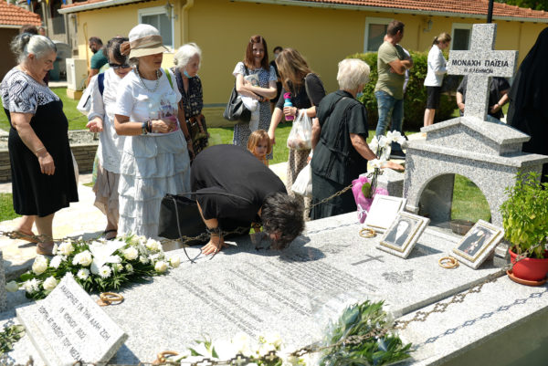 Αρκετοί πιστοί, επί τη ευκαιρία που παρευρέθηκαν στο ανδρικό μοναστήρι του Τρικόρφου και τις δυο αυτές ημέρες, προσκύνησαν τον τάφο της Γερόντισσας Παϊσίας της ελεήμονος, άλλοι ψελλίζοντας προσευχές, άλλοι με δάκρυα στα μάτια και άλλοι γονατιστοί στο μνήμα της, προκειμένου να προσευχηθούν για την ψυχή της ή να ζητήσουν τις πρεσβείες της ή και να αφήσουν ένα λουλούδι στο μέρος που κείτεται το σώμα της, διαβάζοντας την επιγραφή με δικά της λόγια, που βρίσκεται πάνω στο μνήμα: