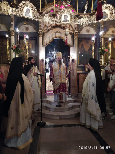 Την Κυριακή 11.8.2019 ο Σεβασμιώτατος Μητροπολίτης Πατρών κ.Χρυσόστομος τέλεσε την Θεία Λειτουργία στην Ιερά Μονή Παναγίας Γηροκομητίσσης Πατρών, συλλειτουργούντων του Ηγουμένου και των Πατέρων της Ιεράς Μονής και με την συμμετοχή πλήθους προσκυνητών από την Πάτρα και αλλού .