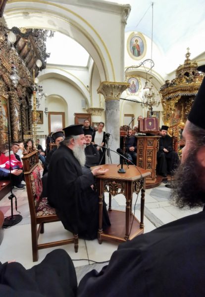 Ακολούθως, ομίλησε με την διακρίνουσα αυτόν ευφράδεια και πνευματικότητα ο π. Γεώργιος Σχοινάς, ο οποίος αναφέρθηκε στην έννοια του μαρτυρίου υπέρ του Χριστού και της μαρτυρίας για το Χριστό, ιδιαίτερα στη σημερινή ταραγμένη εποχή.