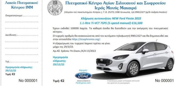 Πώληση λαχνών προς ενίσχυση του Πνευματικού Κέντρου της Μονής Μαχαιρά