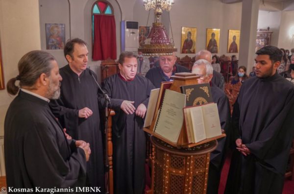 Στον Πανηγυρικό Εσπερινό έψαλλαν ο Πρωτοψάλτης του Ιερού Μητροπολιτικού Ναού των Αγίων Αποστόλων Πέτρου και Παύλου Βεροίας κ. Νικόλαος Χανουμίδης και ο Λαμπαδάριος του Ιερού Προσκυνηματικού Ναού του Αγίου Αντωνίου Βεροίας κ. Βασίλειος Γουδώνης μετά χορού Ιεροψαλτών.