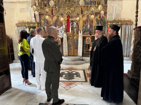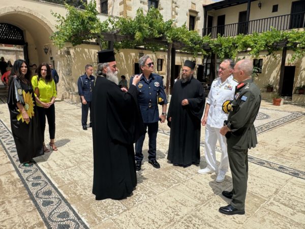 Το δικό σας προσκύνημα βεβαιώνει και μαρτυρεί την ιστορική αλήθεια του Γένους μας, το οποίο πορεύεται στους αιώνες, ανασταίνεται από την τέφρα του και γράφει σελίδες δόξης λαμπρές, καθώς στην πλώρη του έχει καπετάνιο τηνΥπέρμαχο Στρατηγό, Θεοτόκο-Μαρία». Ακολούθως και, εκ μέρους των Αρχηγών, ο Αρχηγός ΓΕΣ, Αντιστράτηγος Γεώργιος Κωστίδης, ευχαρίστησε τον Σεβ. Μητροπολίτη Κισάμου και Σελίνου κ. Αμφιλόχιο και τους πατέρες για «την θερμή υποδοχή και την ζεστή φιλοξενία», δηλώνοντας «χαρά» δια το προσκύνημα και «θαυμασμό» δια το «εξαιρετικό μουσείο και τα εκθέματα του».