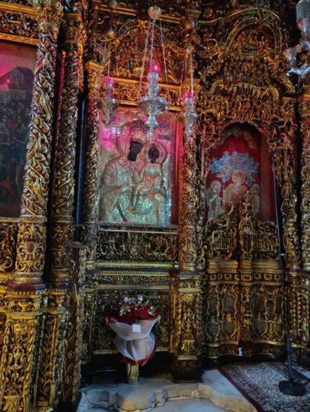 Με λόγο απλό και ιστορικά τεκμηριωμένο παρουσίασε στους μαθητές την λαμπρή ιστορία της Μονής, εστιάζοντας την περιγραφή της στο θαυματουργό εικόνισμα της Θεοτόκου.
