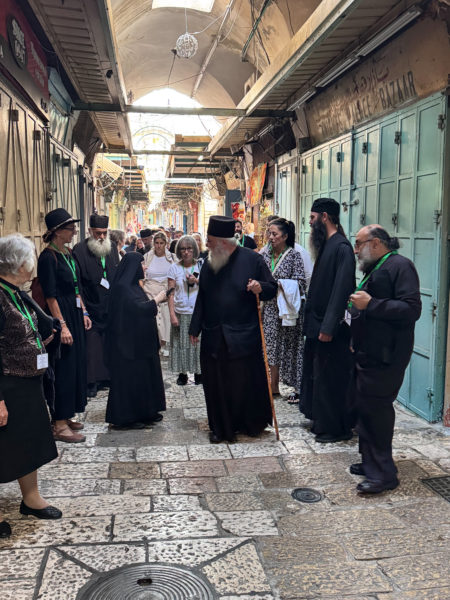 Τέλος, το βράδυ έφθασαν στο Θεοβάδιστο Όρος Σινά, στην Ιερά Μονή Αγίας Αικατερίνης. Την άλλη ημέρα το πρωί, πήγαν στα Ιεροσόλυμα, όπου προσκύνησαν τον Πανάγιο Τάφο, το Φρικτό Γολγοθά και άλλα ευλογημένα προσκυνήματα της Ιερουσαλήμ. Την επόμενη ημέρα προσκύνησαν στο Σπήλαιο της Βηθλεέμ όπου γεννήθηκε ο Χριστός, στο μοναστήρι του Μεγάλου Θεοδοσίου και Σάββα του Ηγιασμένου.