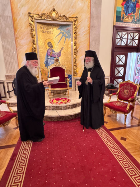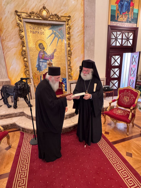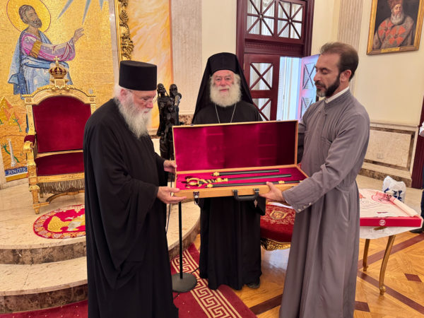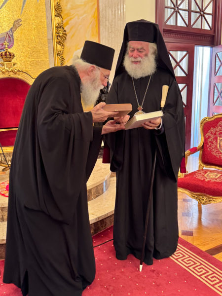 Είχαν τη μεγάλη ευλογία και χαρά να συναντήσουν στην Αλεξάνδρεια, τον Μακαριώτατο Πατριάρχη Αλεξανδρείας και πάσης Αφρικής κ. κ. Θεόδωρο, ο οποίος τους έδωσε τις πατριαρχικές του ευχές, δώρισε στον Γέροντα Νεκτάριο μια ποιμαντική ράβδο, η οποία ήταν δώρο εις αυτόν από τον Πατριάρχη πασών των Ρωσιών Κύριλλο.