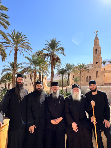 Στη συνέχεια επισκέφθηκαν στην έρημο της Νιτρίας το μοναστήρι του Μεγάλου Παϊσίου (200 περίπου μοναχοί), εκεί βρίσκεται το άγιο και θαυματουργό λείψανο του Μεγάλου Παϊσίου, το οποίο και προσκύνησαν (το μοναστήρι ανήκει στους Μονοφυσίτες). Αργότερα επισκέφθηκαν το Κάιρο, το μουσείο του Καΐρου και τις πυραμίδες, την Ιερά Μονή του Αγίου Γεωργίου, τον Ιερό Ναό του Αγίου Νικολάου, όπου χειροτονήθηκε Επίσκοπος ο Άγιος Νεκτάριος. Πορευόμενοι για το Όρος Σινά, έφθασαν πρώτα στην έρημο της Θηβαΐδος (3 ώρες οδικώς έξω από το Κάιρο), όπου βρίσκεται το μοναστήρι του Μεγάλου Αντωνίου (130 μοναχοί περίπου και αυτό το μοναστήρι ανήκει στους Μονοφυσίτες). Στη συνέχεια προσκύνησαν το Ελληνορθόδοξο γυναικείο μοναστήρι του Αγίου Μωυσή του Θεόπτη, στην έρημο Φαράν.