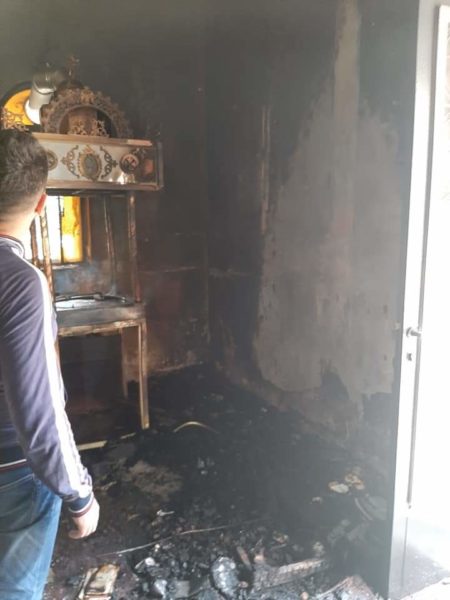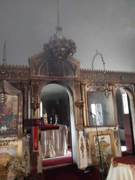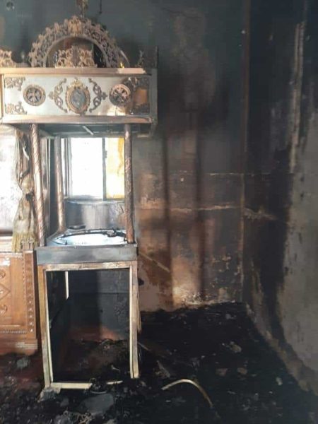 Οι καταστροφές στο εσωτερικό του ναού είναι μεγάλες, όπως τονίζουν κάτοικοι της περιοχής. Το ευτυχές είναι πως ο ναός δεν έχει κεραμοσκεπή οροφή, αλλά τσιμέντο κι έτσι δεν επεκτάθηκε και δεν κινδύνεψε ανθρώπινη ζωή. Η καταστροφή από τη φωτιά όμως εσωτερικά του ναού είναι ολική.