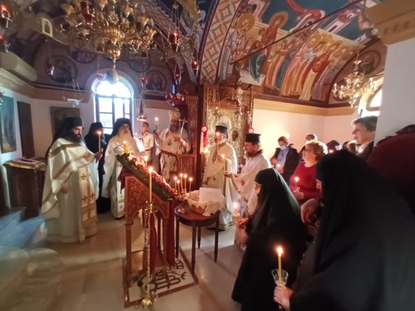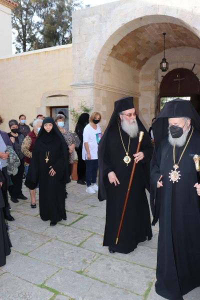 Του Εσπερινού, προσκεκλημένος του Μητροπολίτη Κυδωνίας καί Αποκορώνου κ. Δαμασκηνού και της οσιολ. Καθηγούμενης Θεοξένης, προεξήρχε στην Ι. Πατριαρχική και Σταυροπηγιακή Μονή Ζωοδόχου Πηγής, Χρυσοπηγής, συμπροσευχομένου και του Μητροπολίτη Κυδωνίας και Αποκορώνου κ. Δαμασκηνού, την δε κυριώνυμο ημέρα στην επίσης γυναικεία Ι. Μονή Ζωοδόχου Πηγής, Παρθενώνος, στις παρυφές της Κισάμου.