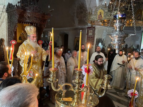 Του Εσπερινού εις την Ι. Μονή Ζωοδόχου Πηγής Παρθενώνος, Κίσαμος, προεξήρχε ο Θεοφ. Επίσκοπος Ευμενείας κ. Ειρηναίος, Βοηθός Επίσκοπος του Παναγιωτάτου Οικουμενικού Πατριάρχου κ.κ. Βαρθολομαίου, Καθηγούμενος της Ι. Πατριαρχικής Μονής Γουβερνέτου.