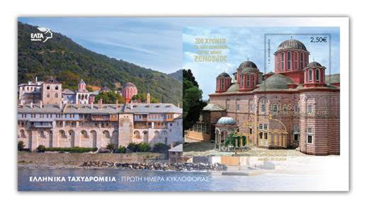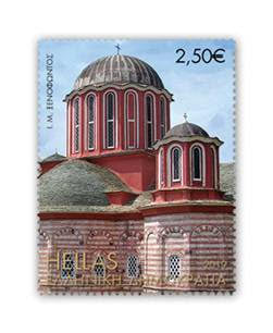 Την Ιερά Βασιλική, Πατριαρχική και Σταυροπηγιακή Μονή του Οσίου Ξενοφώντος, αφιερωμένη στον Άγιο Μεγαλομάρτυρα Γεώργιο τον Τροπαιοφόρο, απεικονίζουν τα νέα γραμματόσημα – φεγιέ των ΕΛΛΗΝΙΚΑ ΤΑΧΥΔΡΟΜΕΙΑ Α.Ε. που θα κυκλοφορήσουν στις 20 Οκτωβρίου 2019, προβάλλοντας την επέτειο της συμπλήρωσης των 200 χρόνων του νέου καθολικού της Ιεράς Μονής.