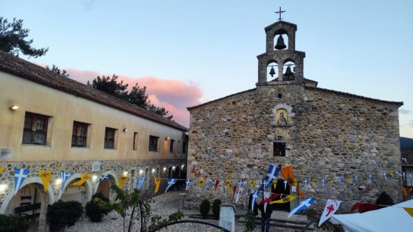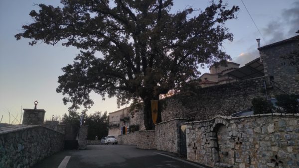 Δίπλα στην εμβληματική βελανιδιά, στην είσοδο της ιστορικής Ιεράς Μονής του Αγίου Νικολάου Καλτεζών Αρκαδίας, πραγματοποιήθηκε η εκδήλωση σήμανσης του συγκεκριμένου δένδρου-μνημείου.