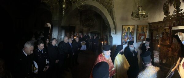 Στο Ιερό Βήμα παρέστησαν συμπροσευχόμενοι οι εκ των αδελφών της Μονής Σεβ. Μητροπολίτες Προικοννήσου κ. Ιωσήφ και Ιεραπύτνης και Σητείας κ. Κύριλλος.