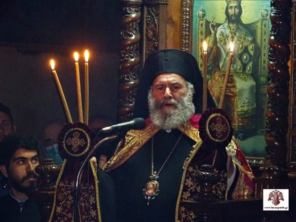 Μετά την ευλόγηση των άρτων, ο Σεβασμιώτατος ευχαρίστησε τον Μητροπολίτη Μάνης, που για ακόμα μια φορά συμμετείχε σε μία πανήγυρη της τοπικής Εκκλησίας, ενώ τον παρακάλεσε να προσφέρει τον ψυχωφέλιμο λόγο του στους ευλαβείς προσκυνητές.