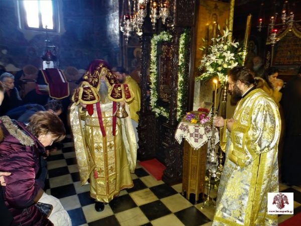 Την κυριώνυμη ημέρα της εορτής τελέσθηκαν ο Όρθρος, ο Εσπερινός και η Θεία Λειτουργία των Προηγιασμένων Τιμίων Δώρων προεξάρχοντος του Σεβασμιωτάτου Μητροπολίτη κ. Ευσταθίου.