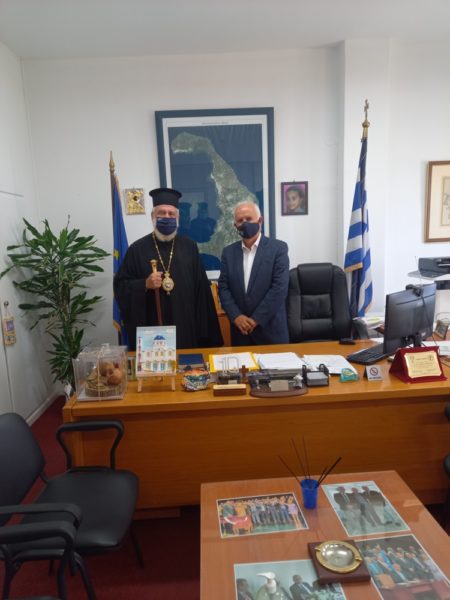 Ακολούθως στο Δημαρχείο Θήρας συναντήθηκε με τον Δημάρχο κ. Αντώνιο Σιγάλα, τον Λιμενάρχη Σαντορίνης και τον Αντιπεριφερειάρχη Υγείας, Πρόνοιας, Κοινωνικής Μέριμνας και Κοινωνικών Παντοπωλείων Κυκλάδων κ. Χαράλαμπο Δαρζέντα.
