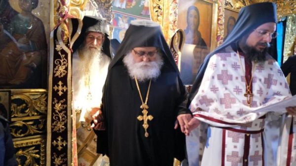 Μετά το πέρας της Θείας Λειτουργίας μετέβησαν εν πομπή στο Συνοδικό της Μονής, όπου ο νέος Ηγούμενος δέχθηκε τις ευχές των Αρχιερέων, του κλήρου και των προσκυνητών.