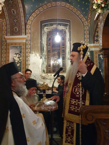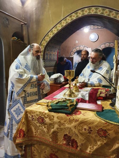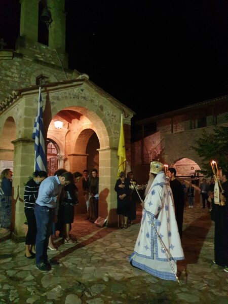 Εμφανώς συγκινημένος αλλά και με αισθήματα χαράς ο Σεβασμιώτατος Μητροπολίτης κ. Θεόκλητος ευχαρίστησε τον Σεβασμιώτατο Μητροπολίτη Μεσσηνίας κ. Χρυσόστομο για την φιλοξενία και την ευκαιρία που του δόθηκε να λειτουργήσει στο μοναστήρι.