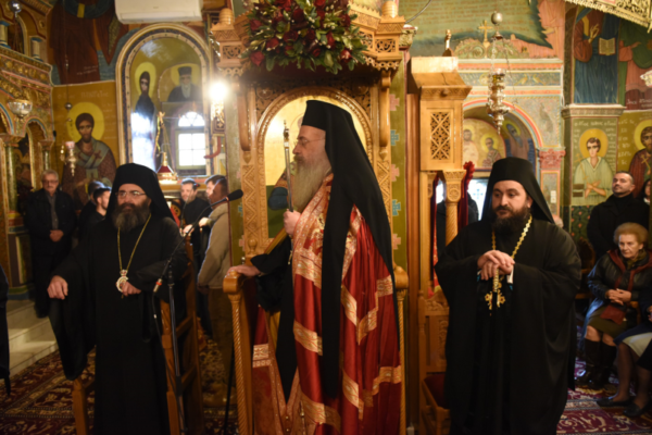 Με την σειρά του ο Μητροπολίτης κ. Επιφάνιος, ευχαρίστησε τον Καθηγούμενο της Μονής π. Γερμανό για την υποδοχή, αλλά και την προσφώνησή του. Αναφέρθηκε στη διπλή παρακαταθήκη που έχει η αδελφότητα στη Μονή, αφενός την διαφύλαξη του μοναστηριού με τους πνευματικούς θησαυρούς της, την Εικόνα του Αγίου Νικολάου και των Ι. Λειψάνων του που διαφύλαξαν οι προκάτοχοι μοναχοί από τους κατακτητές ανά τους αιώνες και αφετέρου τον τόπο, όπου έλαβε χώρα η Πελοποννησιακή Γερουσία το 1821, με την οποία οι ήρωες της Επανάστασης ομολόγησαν την πίστη τους στον Τριαδικό Θεό, αλλά και στερεώθηκαν στα αίματα των Αγίων Νεομαρτύρων Δημητρίου και Παύλου και όλων των αγωνιστών για την ελευθερία. Συνάμα, ευχήθηκε στην αδελφότητα μέσα από την μελέτη των πατερικών κειμένων να κατακτήσουν την σοφία και να μπορούν να αναπαύουν τις ψυχές των προσκυνητών που φτάνουν στην Ιερά Μονή, ώστε να τους οδηγούν στην σωτηρία.