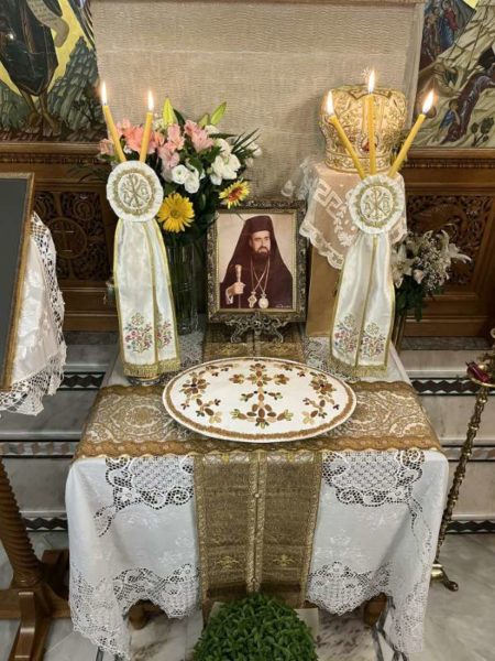 Μετά την επιμνημόσυνη τράπεζα, που προσέφερε η Ιερά Μονή Κουμπέ, αναγνώσθηκε Τρισάγιο επί του τάφου του μακαριστού Μητροπολίτου Τίτου, ενώπιον του Ιερού Ναού του Αγίου Παντελεήμονος του Επισκοπείου.