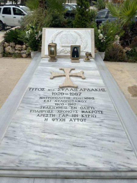 Κατά τη Θεία Λειτουργία τελέσθηκε το Ιερό Μνημόσυνο του μακαριστού Μητροπολίτου Ρεθύμνης και Αυλοποτάμου κυρού Τίτου (Συλλιγαρδάκη), εξ αφορμής της συμπληρώσεως 36 ετών από της εις Κύριον εκδημίας του.