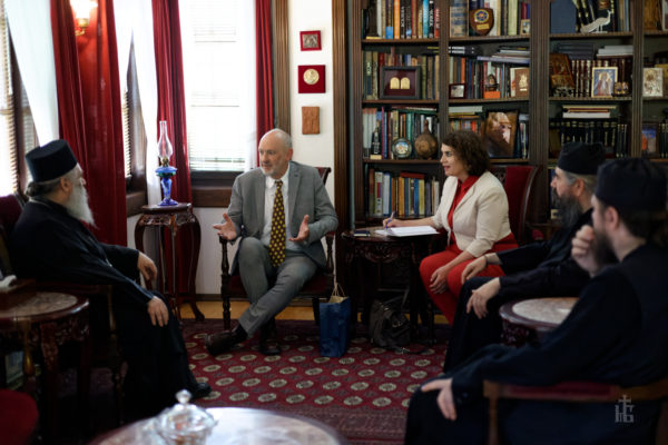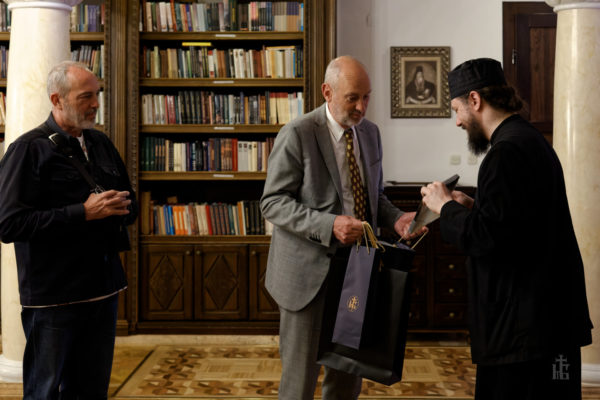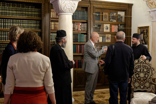 Μετά τη συνάντηση ο Πρέσβης και η συνοδεία του είχαν την ευκαιρία να επισκεφθούν τη βιβλιοθήκη της Μονής, όπου θαύμασαν μερικά από τα σπάνια χειρόγραφα και εξερεύνησαν την εκτενή συλλογή βιβλίων.