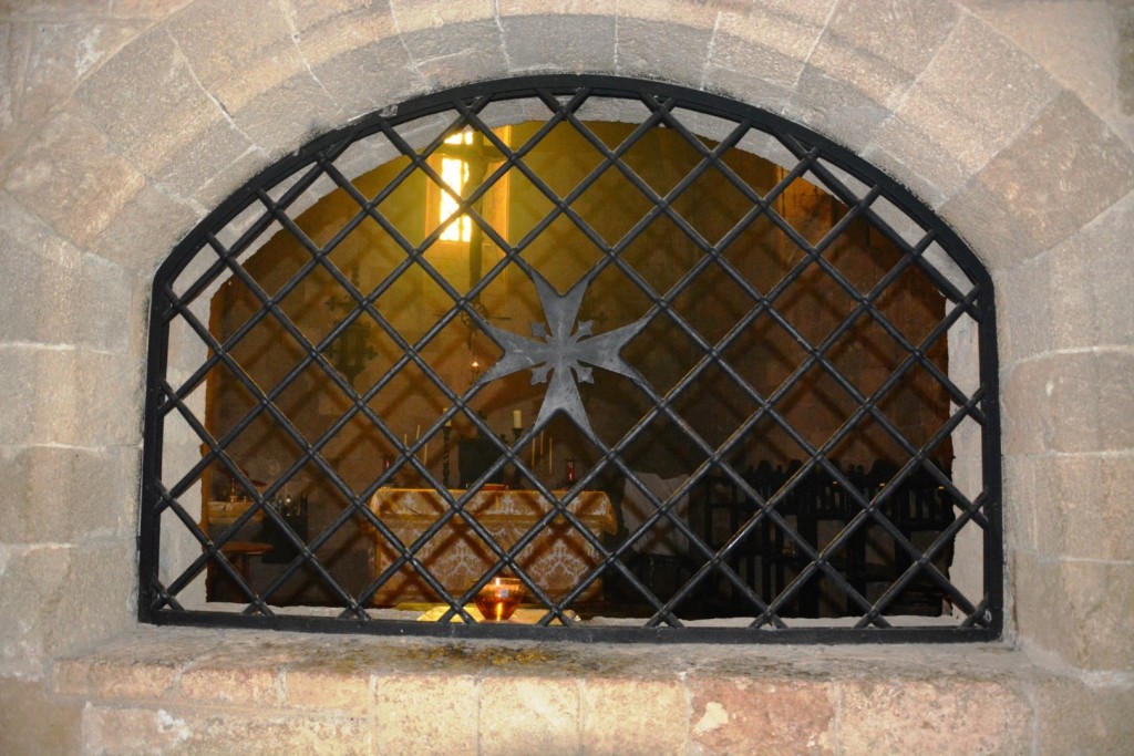 Το μοναστήρι των ιπποτικών χρόνων που καταλαμβάνει μεγάλο τμήμα του πλατώματος στην κορυφή του λόφου έχει ως πυρήνα μικρό ναό αφιερωμένο στην Παναγία στον οποίο αναγνωρίζονται τρεις οικοδομικές φάσεις. Η πρώτη ανάγεται στο α΄ μισό του 14ου αι. και αφορά στην ανέγερση ενός μονόχωρου σταυροθολιακού κτίσματος οικοδομημένου στο ανατολικό τμήμα του βόρειου κλίτους της βασιλικής. Στην επόμενη φάση που τοποθετείται γύρω στο 1450-1480, εντάσσεται η προσθήκη δύο εξάπλευρων παρεκκλησίων σε επαφή με την κόγχη του αρχικού ναού, ενώ στην τελευταία, επί μαγιστρείας Pierre d’ Aubusson (1423 – 1503), η προσθήκη δύο ακόμη παρεκκλησίων ανατολικά των προηγούμενων και σε επαφή μαζί τους.