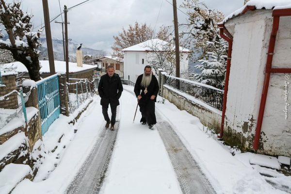 Το ορεινό και χιονισμένο Κυριακοχώρι της Δυτικής Φθιώτιδος επισκέφτηκε το Σάββατο 18 Δεκεμβρίου 2021 εν μέσω σφοδρής χιονοπτώσεως ο Σεβασμιώτατος Μητροπολίτης Φθιώτιδος κ. Συμεών.