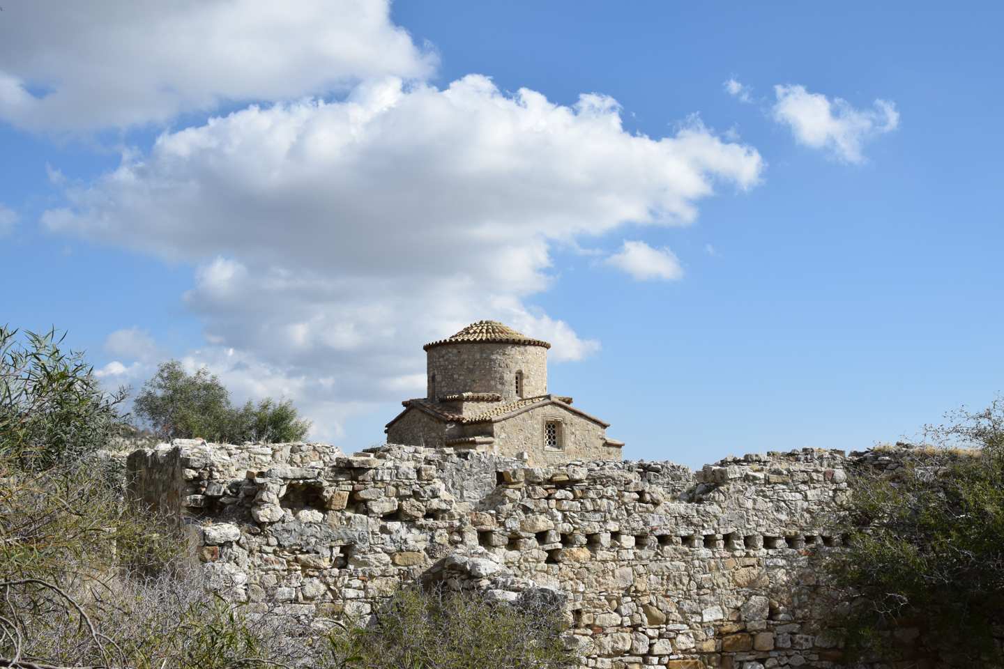 Η διαδρομή από το μικρό αυτό χωριουδάκι στους πρόποδες του Πενταδάκτυλου μέχρι το μοναστήρι είναι καταπληκτική. Η σκηνογραφία εξαίσια.Μπροστά μας το βουνό απαλό και γλυκό, πνιγμένο στο πράσινο. Στα δεξιά μας κάτω απλώνεται η πεδιάδα της Μεσαορίας και ο κόλπος της Αμμοχώστου. Θέα ασύλληπτης ομορφιάς! Μαγευτήκαμε! Μα και πληγωθήκαμε!Τότε θυμηθήκαμε τον ποιητή: “Μούντζωσέ μας, Πενταδάκτυλε ακριβέ, έτσι π’ αφήσαμε τόσο άφρονα να τουρκοπατηθείς!” Κώστας Μόντης