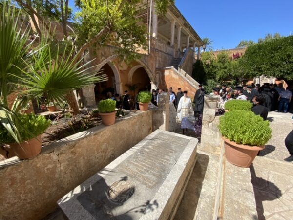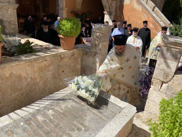 Νωρίτερα τελέσθηκε τρισάγιο στο μνήμα του μακαριστού αοίδιμου Επισκόπου Κισάμου και Σελίνου Γεράσιμο Στρατηγάκη στον οποίο ήταν αφιερωμένη η φετινή επέτειος και για τον οποίο ομίλησε ο Καθηγητής κ. Ευάγγελος Δελάκης.