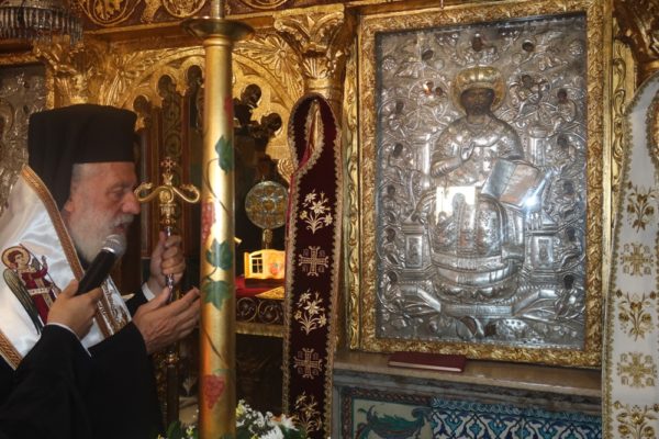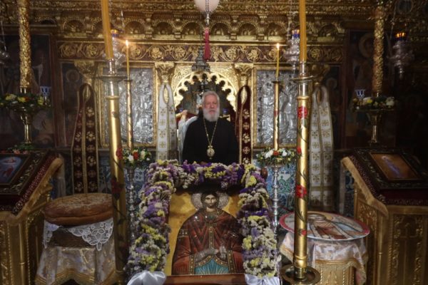 Ευχαρίστησε, επίσης, και συνεχάρη με εγκάρδιους επαινετικούς λόγους τον εορτάζοντα Ηγούμενο της Ιεράς Μονής, Αρχιμαμανδρίτη Ευδόκιμο Φραγκουλάκη, για την πολυετή ανεκτίμητη προσφορά του προς την Ιερά Μονή, την οποία κατέστησε λιμάνι σωτηρίας και παραμυθίας για τα πλήθη των ανθρώπων, που καταφεύγουν σ’ αυτήν και στο επιτραχήλιό του και βρίσκουν ανακούφιση και παρηγοριά.