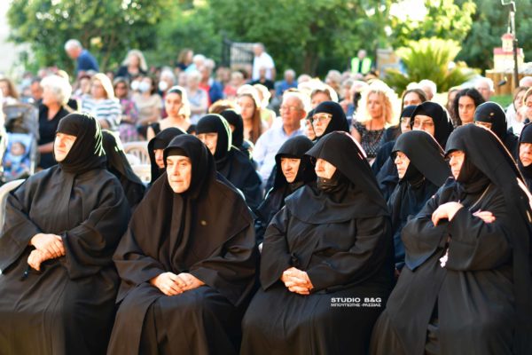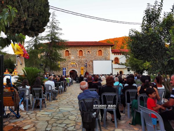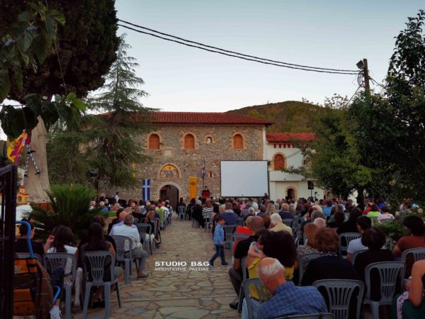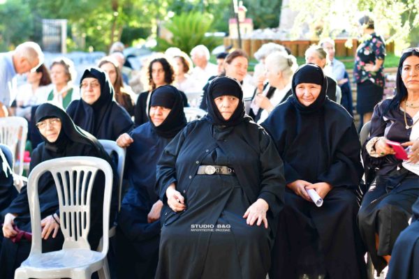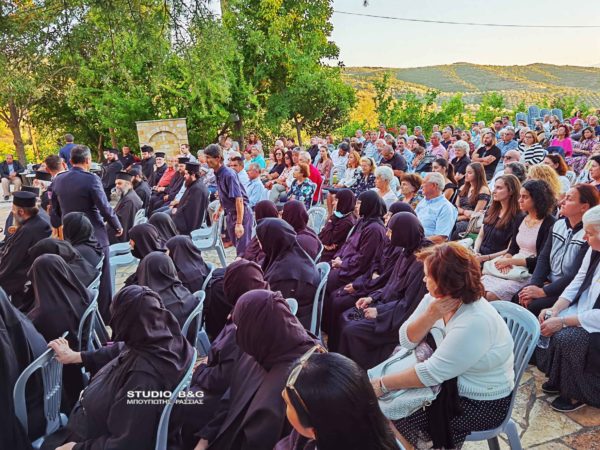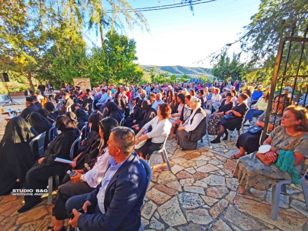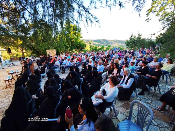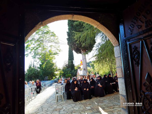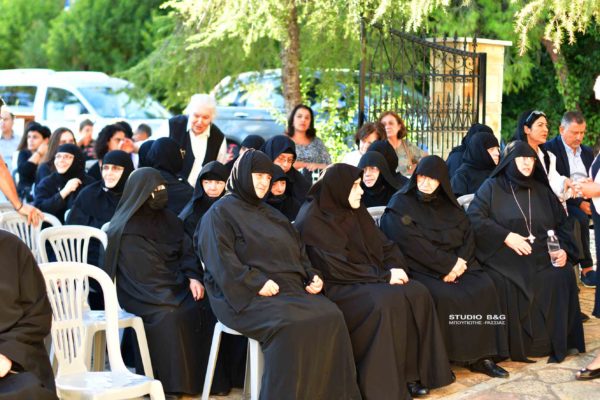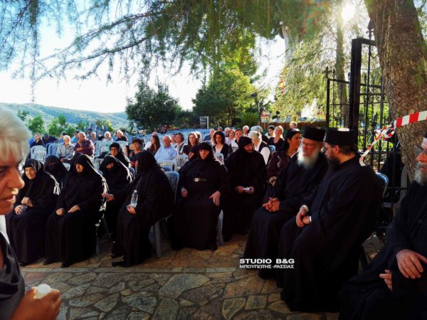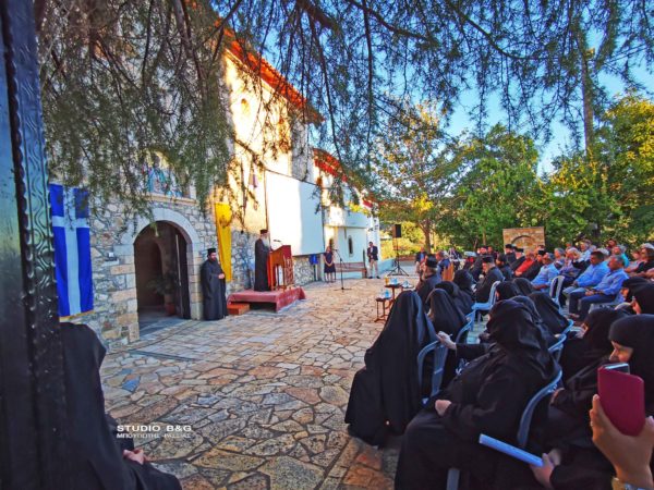 Προηγήθηκαν χαιρετισμοί από τον Μητροπολίτη Αργολίδος κ. Νεκτάριο, τον βουλευτή Αργολίδος Ι. Ανδριανό, τον αντιπεριφερειάρχη Αργολίδος Δ. Σχοινοχωρίτη και του Δημάρχου Ναυπλιέων Δημήτρη Κωστούρου. Ακολούθησε προβολή ντοκιμαντέρ για την Ιερά Μονή. Στην θρησκευτική εκδήλωση παραβρέθηκαν ο αντιδήμαρχος Κ. Ρούτουλας πάρα πολλές μοναχές από ταγύρω μοναστήρια της Αργολίδας και πάρα πολλοί Ιερείς από την Αργολίδα και την Κορινθία .