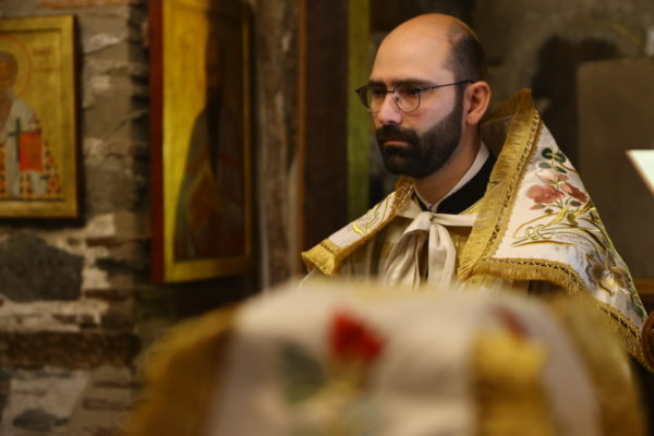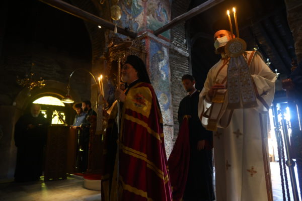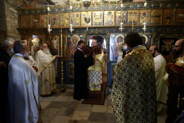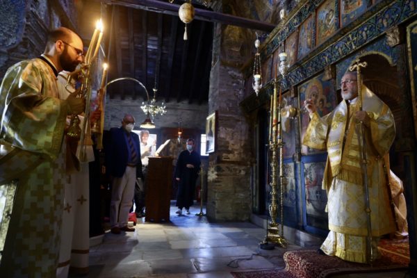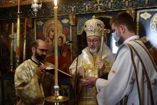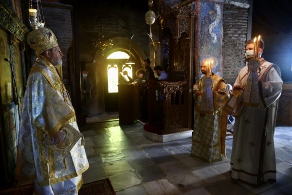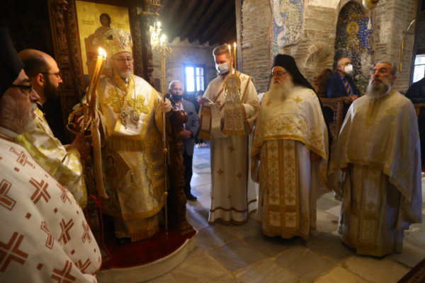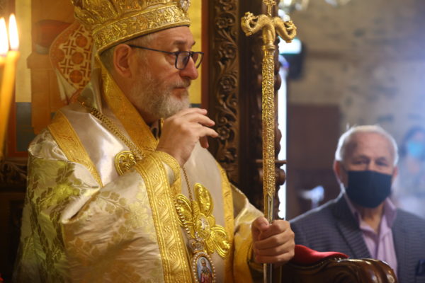 Ο Θεοφιλέστατος παλαισιούμενος από ιερείς και διακόνους , χοροστάτησε στην ακολουθία του Όρθρου και προέστη της Αρχιερατικής Θείας Λειτουργίας.