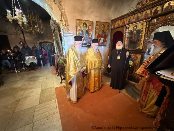 Την Τετάρτη 29 Ιανουαρίου 2025, μνήμη του αγίου μάρτυρος Φιλοθέου και των συν αυτώ μαρτύρων των εν Σαμοσάτοις μαρτυρησάντων, κατά την οποία άγει τα Ονομαστήριά του ο Προηγούμενος της Ιεράς Πατριαρχικής και Σταυροπηγιακής Μονής Τοπλού Σητείας Πανοσ. Αρχιμανδρίτης Φιλόθεος Σπανουδάκης, ο Σεβασμιώτατος Μητροπολίτης Ιεραπύτνης και Σητείας κ. Κύριλλος παρέστη συμπροσευχόμενος από του Ιερού Βήματος στο Καθολικό της παλαίφατης και ιστορικής Μονής, κατά τη διάρκεια της Θείας Λειτουργίας.