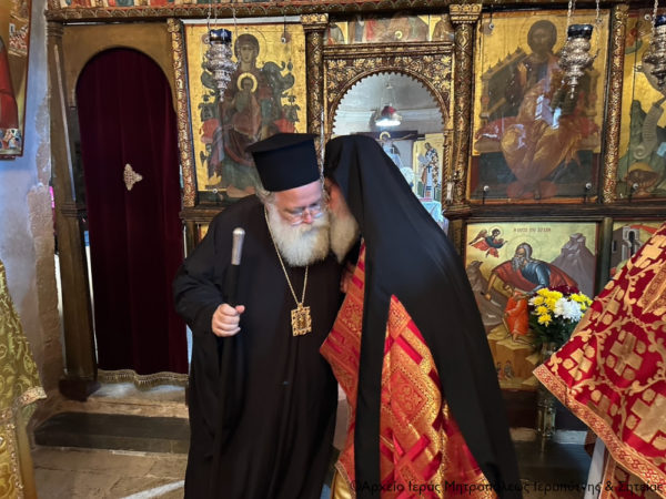 Ο Σεβ. κ. Κύριλλος μετά την Απόλυση προσφώνησε κατάλληλα τον εορτάζοντα Προηγούμενο Αρχιμ. Φιλόθεο και του ευχήθηκε ο Κύριος της δόξης, με τις πρεσβείες της Κυρίας Ακρωτηριανής, του Αποστόλου της αγάπης Ευαγγελιστού Ιωάννου και του Αγίου Μάρτυρος Φιλοθέου, να του χαρίζει υγεία πνευματική και σωματική, και να τον ενισχύει στην ακάματη και φιλότιμη διακονία του στην ιστορική Μονή της μετανοίας του, για να συνεχίσει για πολλούς χρόνους ακόμη να διακονεί με τον ίδιο ζήλο και την ίδια αγάπη υποδειγματικά και με αξιομίμητη αφοσίωση το εμβληματικό καστρομονάστηρο της Ανατολικής Κρήτης.