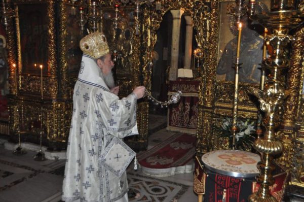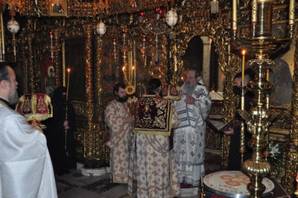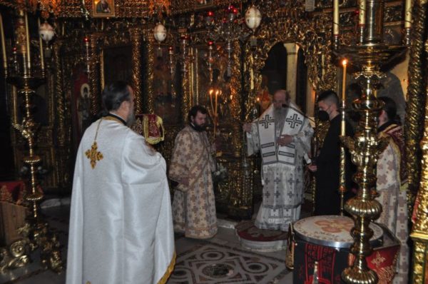Το πρωί στο καθολικό ιερούργησε ο Σεβασμιώτατος Μητροπολίτης Δράμας κ. Παύλος. Μετά το τέλος της Θείας Λειτουργίας έψαλλε κατά το μοναχικό τυπικό το μνημόσυνο υπέρ αναπαύσεως της ψυχής της μοναχής Αλεξίας, η οποία για 46 έτη διακόνησε ως ηγουμένη την Ιερά Μονή.